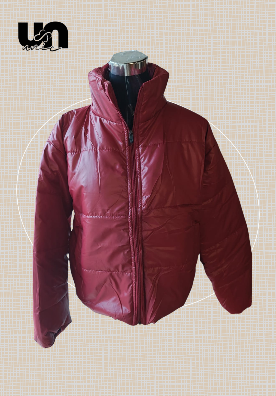 Confeccionada en un tejido ligero con acabado brillante o satinado, presenta un efecto acolchado que te protege del frío sin añadir peso excesivo. El corte es amplio y oversize, lo que le da un toque casual y de tendencia. El cuello alto y el cierre de cremallera frontal la hacen práctica y funcional.