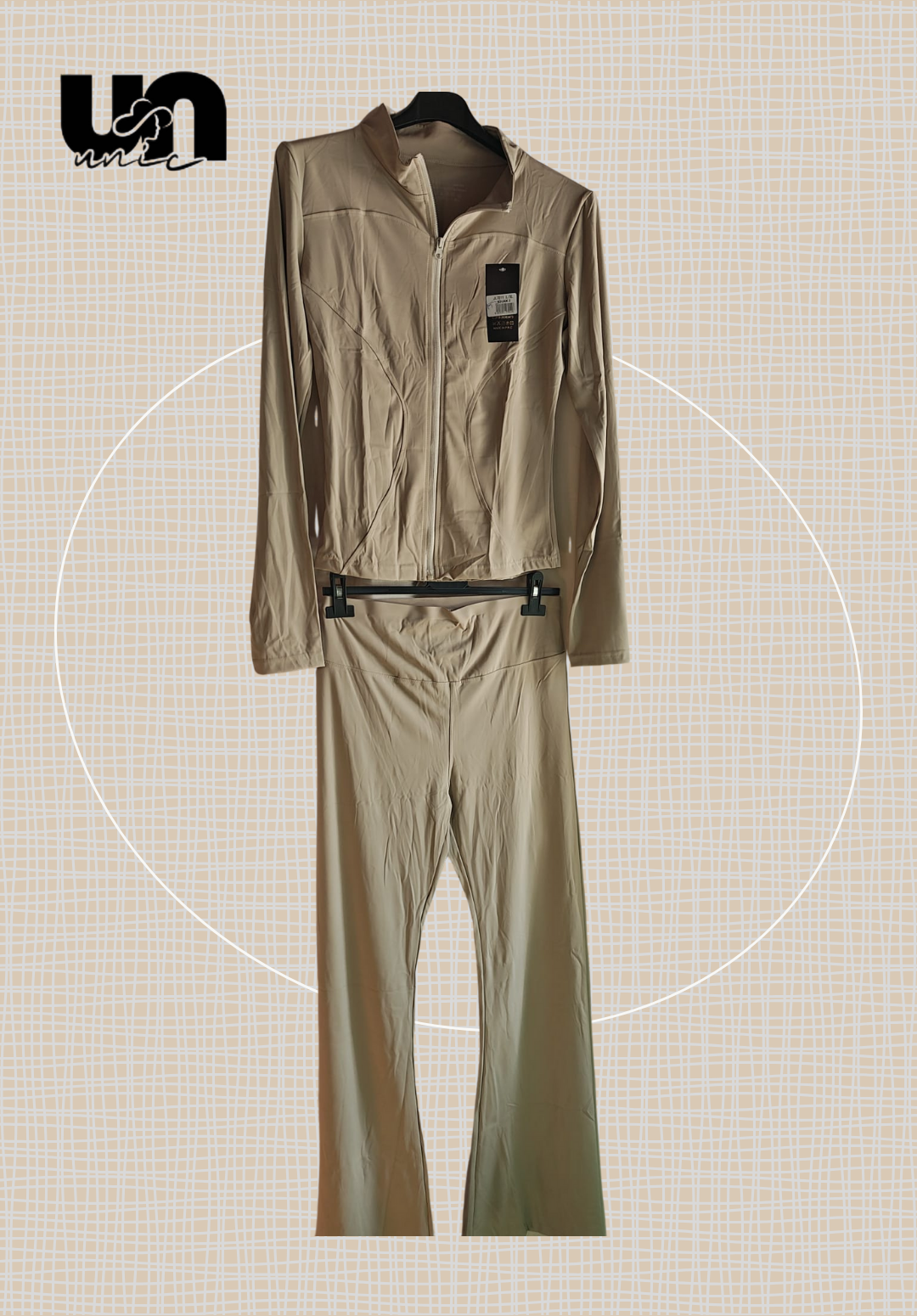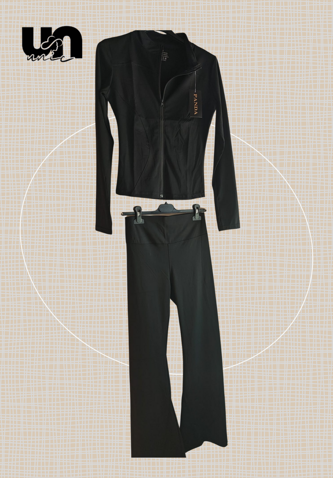 Redefine tu silueta sin sacrificar el confort con nuestro chándal de licra fría, diseñado para realzar tu figura de forma natural. Este conjunto, tiene un tacto ligero y una frescura inigualable, ideal para cualquier rutina de ejercicio o para tu día a día. El pantalón, con su cintura ancha, no solo ofrece una sujeción excepcional y un efecto reductor en el abdomen, sino que también se expande en una elegante forma ligeramente acampanada en el bajo, aportando un toque de estilo sofisticado a tu look deportivo.