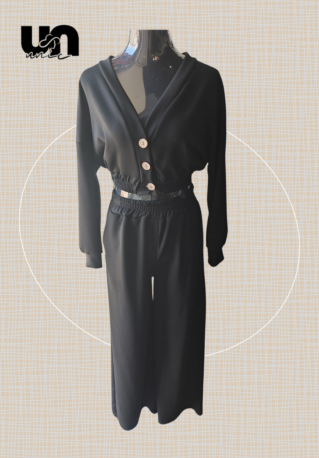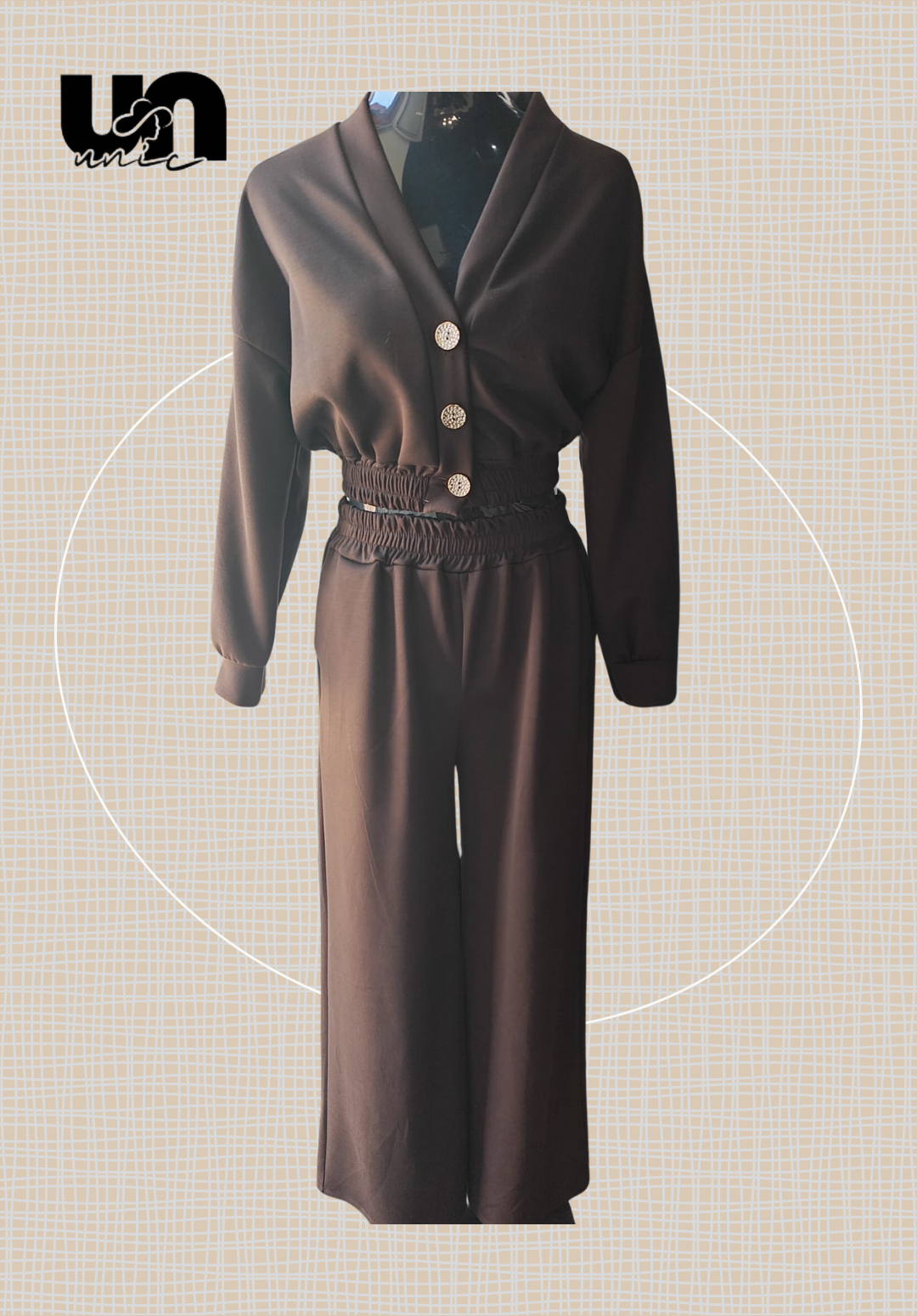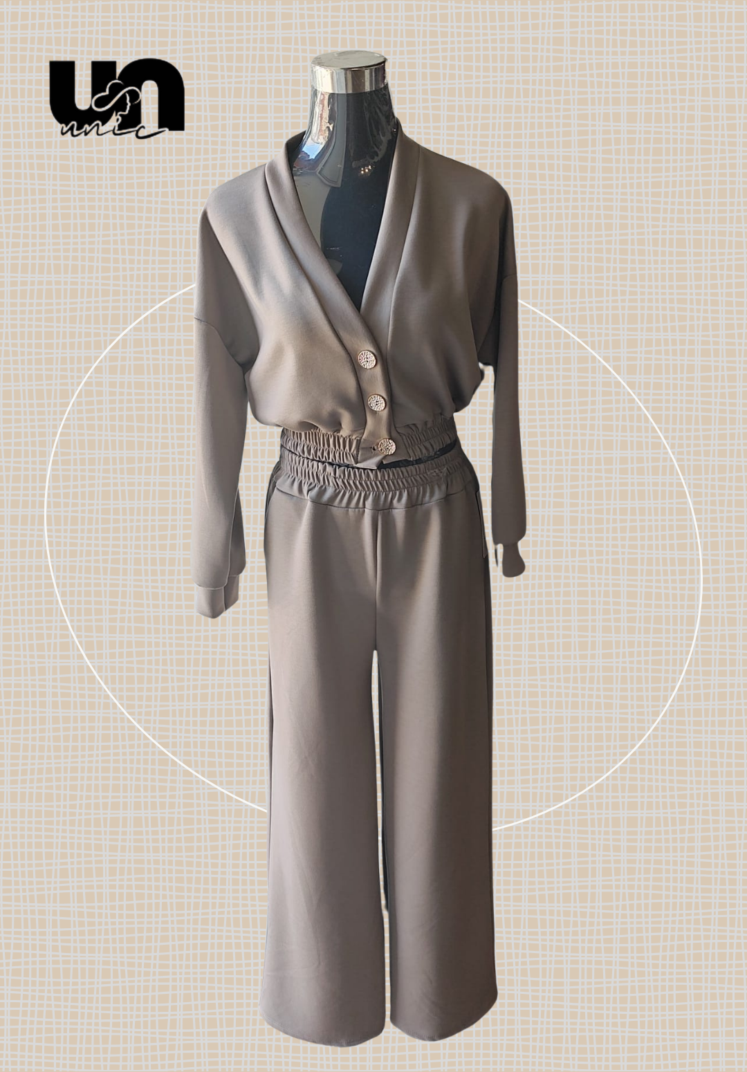 Este set de dos piezas, compuesto por una pantalón y un top a juego, es la definición de elegancia y estilo casual. El tejido es super suave y de alta calidad- Se adapta a tu figura, ofreciendo un ajuste cómodo y favorecedor.