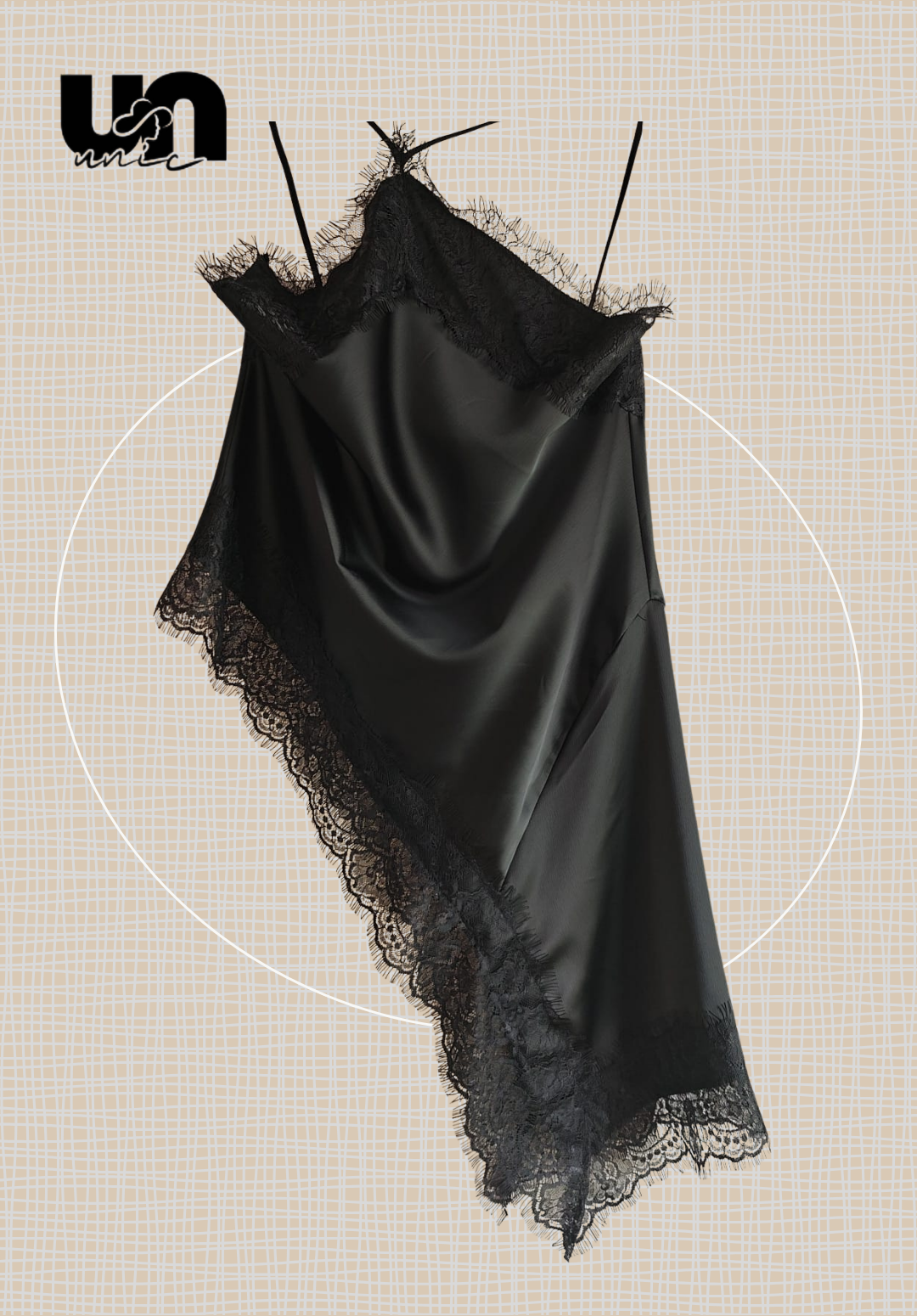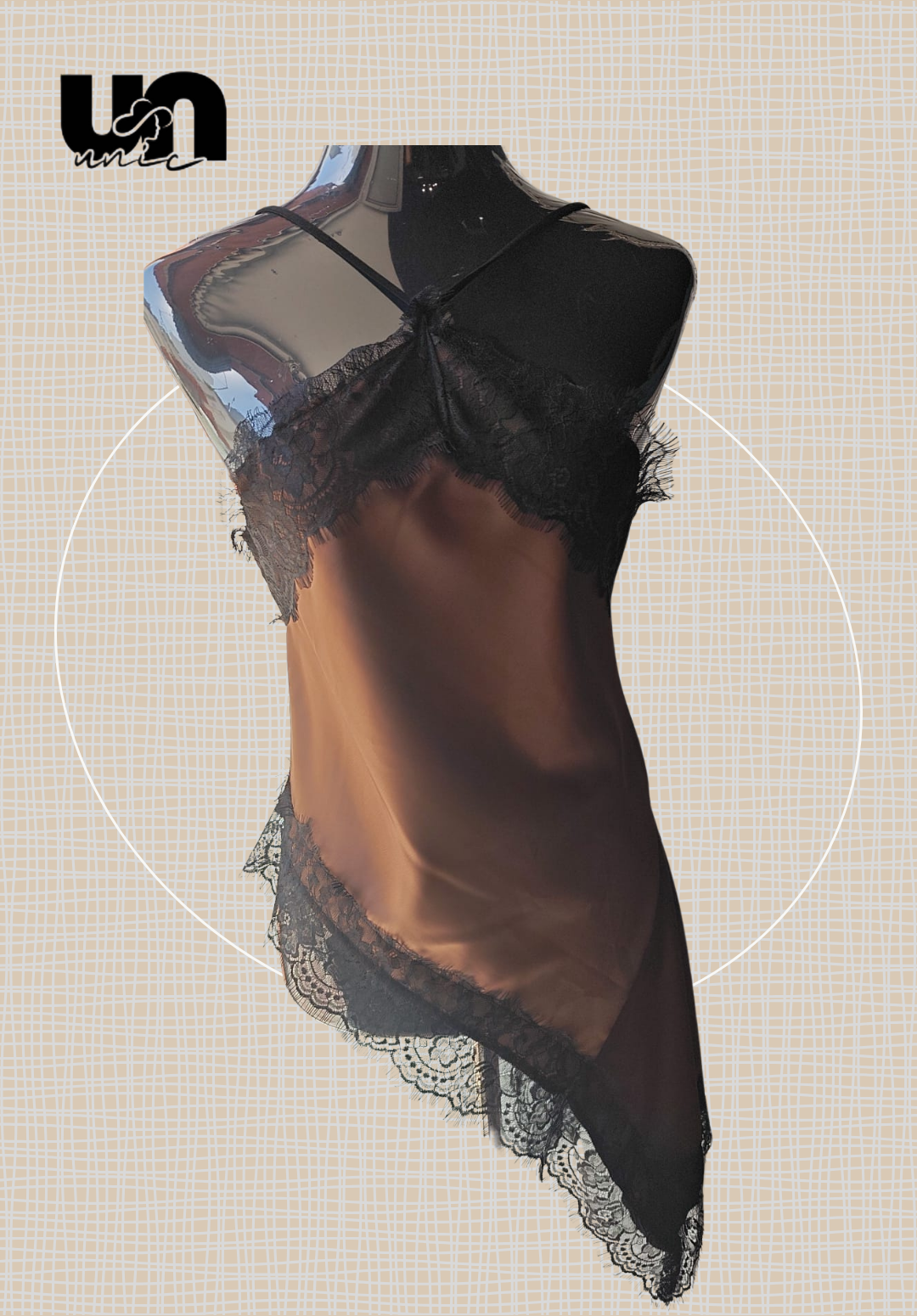 Súmate a la tendencia de llevar lencería exterior con este sofisticado top de tirantes, una prenda muy viral que te ofrece un look seductor y moderno. Confeccionado en un tejido satinado y fluido, destaca por sus delicados bordes de encaje negro que recorren el escote y el bajo. Su diseño es asimétrico en el bajo, creando un movimiento elegante y fluido al caminar. Las finas tirantas cruzadas en la espalda añaden un detalle extra de sofisticación.